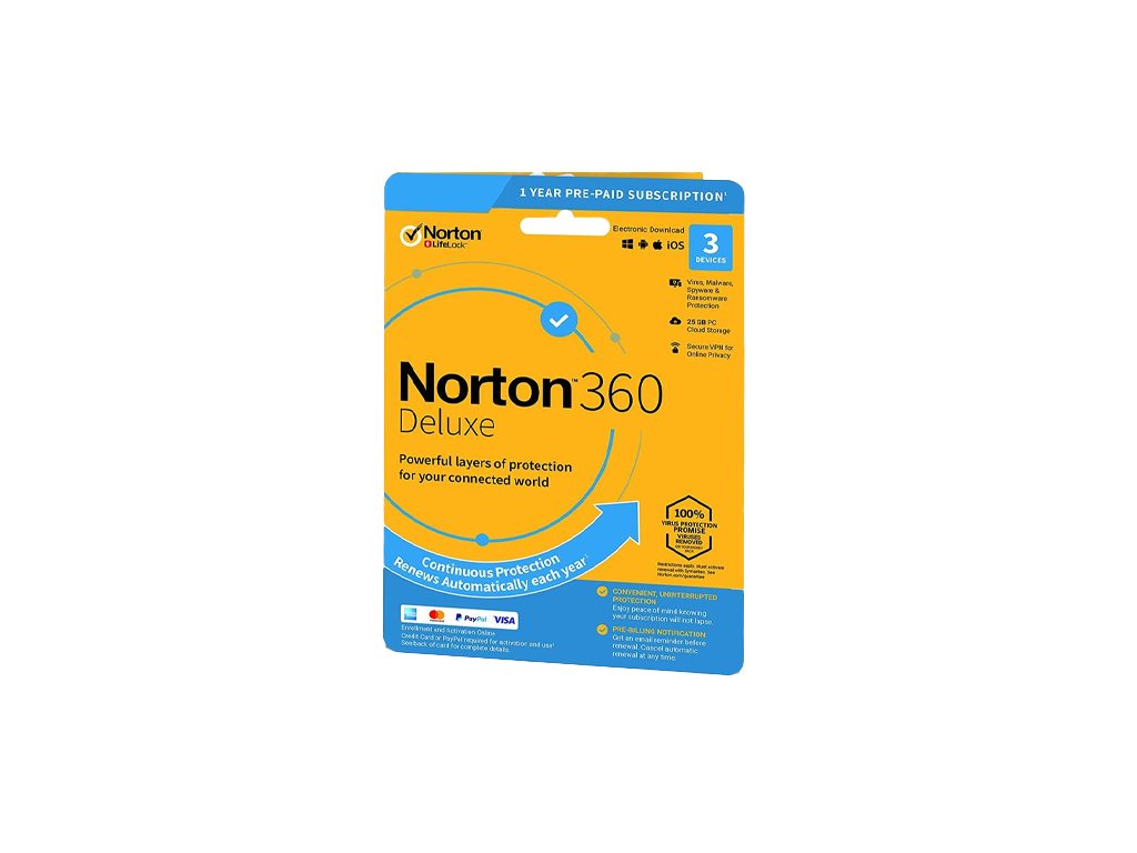 NORTON 360 DELUXE 25GB + VPN 3 zařízení - 12 měs.